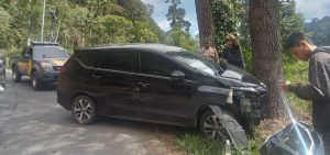 Menurut keterangan saksi dan korban di duga kendaraan tersebut mengalami rem blong sehingga kehilangan kendali dan menabrak pohon pinus yang berada di pinggir jalan raya tersebut.