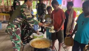 Pos Kokas Satgas Yonif 763/SBA Gelar Kegiatan Makan Bergizi Gratis