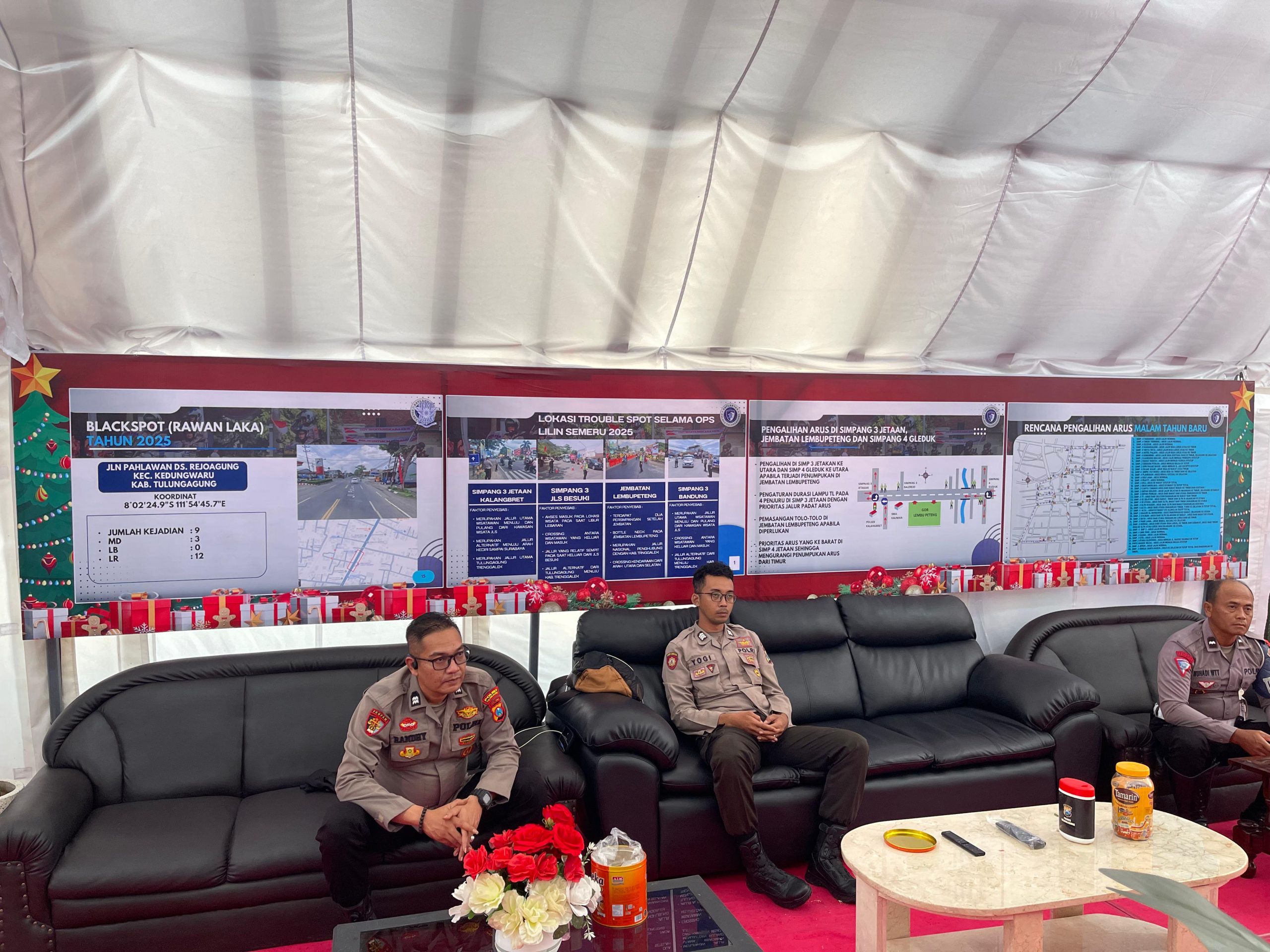 Kasatlantas Polres Tulungagung AKP M. Taufik Nabila, S.T.K., S.I.K., M.H., menyampaikan bahwa pos pelayanan tersebut dilengkapi dengan sejumlah fasilitas pendukung, termasuk taman bermain anak. Fasilitas ini disiapkan untuk memberikan kenyamanan bagi keluarga yang beraktivitas di sekitar kawasan GOR maupun pengguna jalan yang singgah.