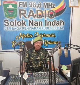 Usai pelaksanaan penaikan bendera merah putih, Ketua PPM Kabupaten Solok, Bustaman, S. Pd menggelar siaran langsung di studio Radio Solok Nan Indah FM 98,6 MHz.
