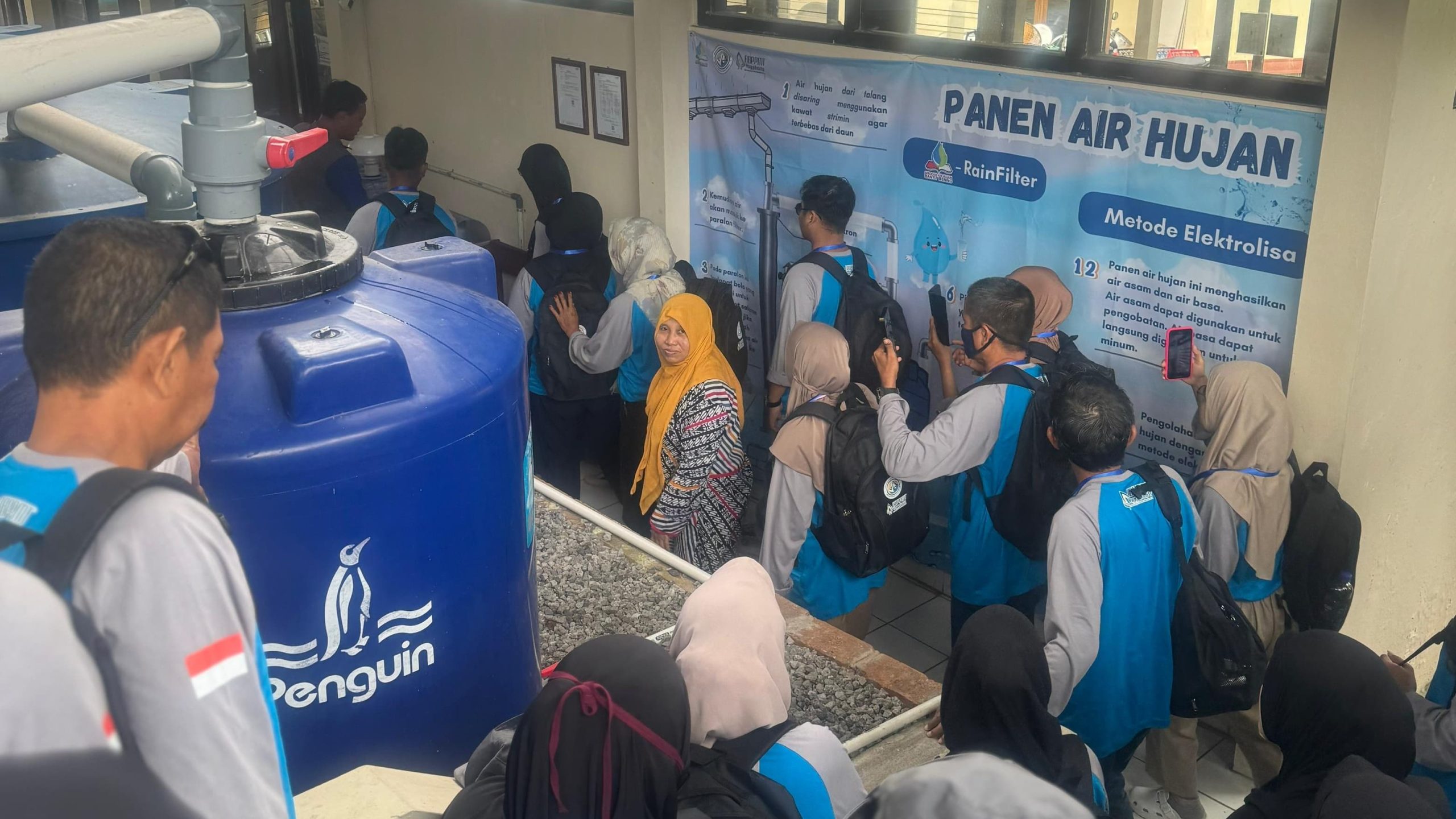 Para peserta di ajak melihat Penampungan Air Hujan hingga ke alat Elektrolisa yang meningkatkan kualitas air hujan lenih optimal. Peserta sangat antusias karena baru kali pertama ini ternyata Air Hujan bisa sebagai pengganti air yang selama ini kita minum dan menyehatkan. Selama ini cara pandang kita salah bahwa air hujan membawa bencana hingga di fitnah, tapi sebenarnya jika kita renungkan hingga mendalam. Ketika kita melakukan aktifitas yang selama ini kita konsumsi yaitu pertanian, perkebunan, perikanan, peternakan jika tidak ada air apa semuanya terselesaikan?…”Tidak”. Karena sumber mata air tidak mengalir karena hutan habis di tebang, tidak ada akar yang meminum, menampung air hujan lagi. Dan Sungai sudah mengering karena semua kesalahan kita sebagai manusia yang di ciptakan terakhir kali setelah semua nya tercipta dari Flora dan Fauna. Manusia adalah Tamu di Bumi ini yang hidup hanya sementara setiap saat akan di panggil menghadap Penciptanya untuk di mintai pertanggung jawaban selama di dunia, ucap, Bu Ning (Sri Wahyuningsih).