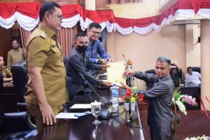 Lebih lanjut Bupati menjelaskan, “tentunya selaku dan atas nama Pemerintah Daerah mengucapkan ribuan terima kasih, dimana pada setiap tahapan yang dilaksanakan pimpinan dan anggota DPRD sangat sungguh sungguh melaksanakannya dengan baik.”