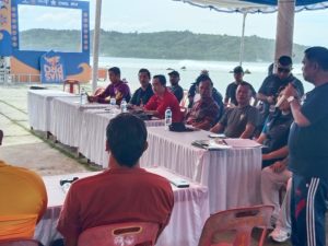 Rapat Finalisasi panitia pelaksana kegiatan kejuaraan surfing internasional Nias Pro 2025 world surf league Qualiying Series (QS) di hadiri Personil Koramil-12/Teluk Dalam Serka G. Nehe, Sertu D. Situmorang dalam rangka mensukseskan pelaksanaan Surfing di Kabupaten Nias Selatan. Jum’at 20/6/2025.