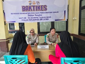 Makasar | Suaraindependentnews.id – Menyambut HUT Ke-54 KORPRI Tahun 2025, Korpri Polda Sulsel kembali menggelar beberapa kegiatan, diantaranya Bakti Sosial Pelayanan Kesehatan di Klinik Biddokkes Panaikang Polda Sulsel, dan Edukasi Kesehatan Gigi di Sekolah Dasar wilayah Panaikang, Rabu 12 Nopember 2025.