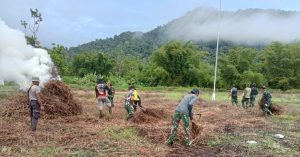 “Rencananya tanah yang dibersihkan oleh anggota Satgas dan masyarakat tersebut, akan digunakan untuk rangkaian kegiatan memperingati HUT Kemerdekaan Republik Indonesia ke-78 serta nantinya dapat dimanfaatkan warga untuk berbagai sarana olah raga”, jelas Dansatgas.