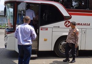 POLRES TASIKMALAYA KOTA-POLDA JABAR || suaraindependentnews.id – Sat Binmas Polres Tasikmalaya Kota melaksanakan kegiatan penyuluhan dan himbauan Kamseltibcarlantas Kamtibmas tentang himbauan Kamtibmas kepada para supir dan kernet bus Primajasa di pool bus Budiman Indihiang Kota Tasikmalaya, Kamis 6 April 2023.