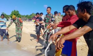 “Dari informasi tersebut Danpos Waisakai SSK-l Sertu Amin Makiki memerintahkan Wadanpos Serda Ato Riyanto bersama Pemerintah Desa (Pemdes) Waisakai mendatangi lokasi dan berhasil mengamankan 10 orang terduga pengguna bom ikan”, jelas Dansatgas.