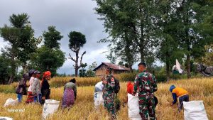 Satgas Pamtas RI–RDTL Yonarhanud 15/DBY Pos Haumeniana Bantu Warga Panen Padi di Perbatasan