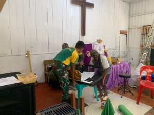 Satgas Pamtas Yonarmed 11 Kostrad Bersihkan dan Hias Gereja Jelang Natal di Sekaduyan Taka
