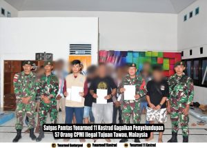 Nunukan | suaraindependentnews.id 20 Februari 2025 – Satgas Pamtas Yonarmed 11 Kostrad berhasil menggagalkan penyelundupan 57 orang Calon Pekerja Migran Indonesia (CPMI) ilegal yang hendak diberangkatkan ke Tawau, Malaysia. Operasi ini dilakukan di pertigaan Kampung Bugis, Desa Bambangan, Kecamatan Sebatik Barat, Kabupaten Nunukan.