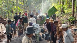 Dibawah terik matahari, para prajurit TNI dan warga bahu membahu mencampur material, mengangkat adukan, dan meratakan cor beton. Danki Satgas TMMD Lettu Inf Agus Suryanto mengatakan bahwa antusiasme warga menjadi motivasi tersendiri bagi personel Satgas.