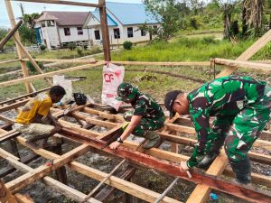 Satgas Yonif 123/Rajawali Bantu Bangun Rumah Pendeta di Kampung Mabul, Distrik Koroway