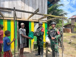 Satgas Yonif 123/Rajawali Pos Koroway Gelar Patroli Sambil Membagikan Sembako dan Pelayanan Kesehatan di Kampung Mabul