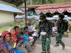 YAHUKIMO || Suaraindependentnews.id — Dalam rangka memperingati Hari Ulang Tahun Batalyon Infanteri 521/Dadaha Yodha, personel Satuan Tugas (Satgas) Pos Kurima melaksanakan kegiatan berbagi kasih bersama masyarakat sekitar di wilayah penugasan Distrik Kurima, Kabupaten Yahukimo, Papua Pegunungan. (7/6/2025).