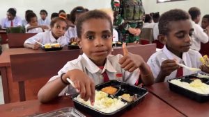 Teluk Bintuni || suaraindependentnews.id – Dukung program pemerintah makan bergizi gratis, Pos Masyeta membagikan makanan kepada Murid SD Inpres Masyeta, Distrik Masyeta, Kabupaten Teluk Bintuni, Papua Barat. (27/6/2025)
