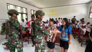 Satgas Yonif 642/Kps Dukung Program Pemerintah dengan Bagikan Makanan Bergizi Gratis di Papua