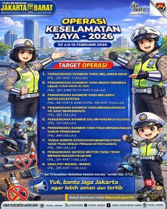 Jakarta Barat || Suaraindependentnews.id -Satuan Lalu Lintas Polres Metro Jakarta Barat menggelar Operasi Keselamatan Jaya Tahun 2026 yang dimulai pada Senin (2/2/2026).