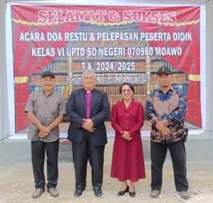 SD Negeri 070980 Mo’awo melaksanakan Doa Restu dan pelepasan peserta didik Kelas VI. Dalam hal ini sebagai Ketua Panitia, Winner Pra Fortin Harefa (murid) dan Sekretaris Johan Rizki G Telaumbanua serta didukung dari Perwakilan orang tua Tim Panitia, Peringatan Harefa dan Yatafati Zebua, dilaksanakan dilapangan Sekolah SD Negeri Mo’awo, Kecamatan Gunungsitoli .Kamis (1/5/2025).