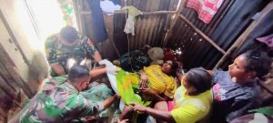 Dantonkes (Komandan Peleton Kesehatan) Letda Ckm Eka Fedi Setiawan S.Kep., beserta personel Satgas lainnya menuju lokasi untuk memberikan pertolongan medis kepada warga tersebut.