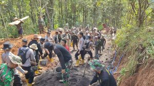 Sumedang | suaraindependentnewsid – Semangat gotong royong kembali ditunjukkan dalam pelaksanaan TNI Manunggal Membangun Desa (TMMD) ke-124 di Desa Pamulihan, Kecamatan Situraja, Kabupaten Sumedang. Anggota Satgas TMMD, personel Kepolisian polres Sumedang, dan warga setempat terlihat kompak melaksanakan pengesoran material untuk pembangunan jalan di lokasi kegiatan TMMD.