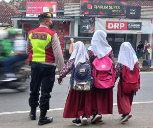 Strong Point Pagi, Kanit Samapta Polsek Cisayong Gatur Lantas Seberangkan Anak Sekolah