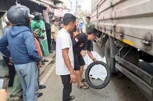 “Naas di alami ini perempuan yang di bonceng suaminya masuk ke kolong truk sampai terlindas ban truk akhirnya menianggal dunia di tempat sedangkan suaminya selamat”tambahnya.
