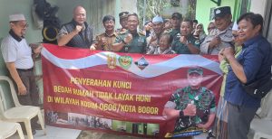 Ibu Ade Iyoh terharu saat menerima kunci rumah yang sudah diperbaiki dan menyampaikan terima kasih kepada Kodim 0606/Kota Bogor dan warga masyarakat atas bantuan perbaikan rumahnya.