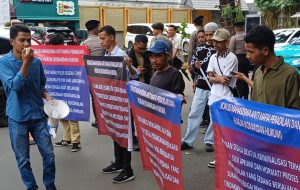 Dalam orasinya, Jufri selaku koordinator Komandan Hukum menyampaikan empat poin tuntutan utama kepada Kapolri: