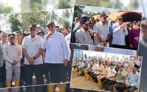 Pada kesempatan tersebut juga dilakukan penyerahan bantuan secara simbolis kepada petani terdampak berupa biaya olah lahan sebesar Rp. 900 ribu per hektare, bantuan benih, pupuk, serta fungisida.