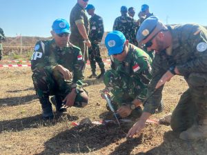 Lebanon || Suaraindependentnews.id – Blat, Marjayoun, Lebanon Selatan, –Bertempat di UNP 7-2 Sektor Timur, dipimpin oleh Kapten Cpm Roy Hengki Gama selaku Pasiops beserta Personel SEMPU XXV-Q lainnya, ikuti pelatihan dari G5 Training Sektor Timur tentang Explosive Hazards Awareness guna menambah ilmu pengetahuan dan keterampilan tentang kesadaran akan bahaya ledakan yang banyak tersebar di daerah misi di Lebanon (30 Juni 2025). Kegiatan ini sangat bermanfaat dan dapat diaplikasikan oleh Para Personel SEMPU XXV-Q pada saat melaksanakan tugas setiap waktunya seperti pada saat pelaksanaan Patroli di daerah-daerah yang diduga berbahaya/rawan akan ledakan ataupun ranjau.