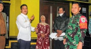 Rangkaian kegiatan penutupan TMMD Imbangan Kodim 0624/Kabupaten Bandung Tahun 2023 diakhiri dengan pemberian kunci rumah kepada Bapak Koswara yang rumahnya direhab oleh Bupati Bandung disaksikan Dandim 0624/Kabupaten Bandung beserta tokoh masyarakat dan Kepala Desa Rawabogo. (Pendam III/Siliwangi, editor by [email protected]).