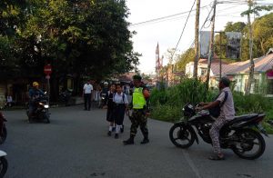 TNI-BABINSA BANTU ANAK SEKOLAH MENYEBERANG JALAN