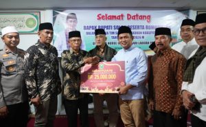 Kegiatan Safari Ramadhan ditutup dengan penyerahan bantuan pembangunan Mesjid dari Pemerintah Kabupaten Solok sebesar Rp25.000.000,- sebagai bentuk dukungan terhadap sarana ibadah dan kebersamaan masyarakat Nagari Labuah Panjang. (Billy)