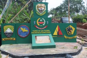 Sumedang || Suaraindependentnewsid – Pembangunan tugu prasasti yang menjadi simbol selesainya kegiatan fisik pada program TNI Manunggal Membangun Desa (TMMD) ke-124 Kodim 0610/Sumedang kini telah tuntas digarap. Tugu ini berdiri kokoh di Desa Pamulihan, Kecamatan Situraja, menandakan bahwa seluruh pekerjaan fisik maupun non-fisik TMMD hampir seluruhnya rampung.
