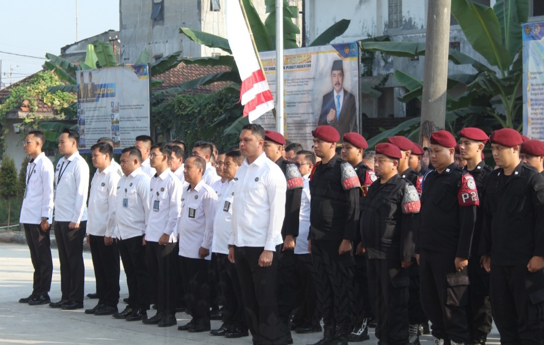 Upacara Gabungan di Pimpin Langsung Kakanwil Ditjen Pemasyarakatan (Ditjenpas) Jatim Kadiyono Serta Memberikan Penghargaan Kepada Empat Pegawai Rutan Kelas 1 Surabaya