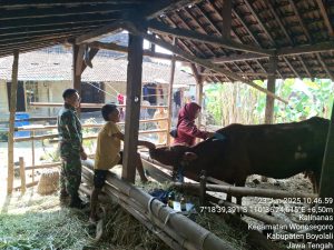 Babinsa Serka Joko Prasetyo menyatakan bahwa TNI Khususnya Babinsa Kodim 0724/Boyolali selalu siap mendukung program pemerintah dalam meningkatkan kesejahteraan masyarakat, salah satunya dengan mendampingi program vaksinasi untuk hewan ternak