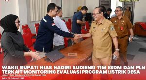 Wakil Bupati Nias Arota Lase, A.Md menghadiri audiensi bersama Tim Kementerian ESDM dan UP3 PLN Nias terkait Monitoring dan Evaluasi Program Pembangunan Jaringan Listrik Desa melalui Anggaran Biaya Tambahan Tahun 2025, bertempat di Aula Gido Kantor Bupati Nias. Selasa (10/2/2026).