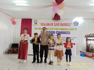 Bhabinkamtibmas Desa Sukamukti Hadiri dan Monitoring Kegiatan Kenaikan Kelas serta Pelepasan Siswa SDN Cinangsi