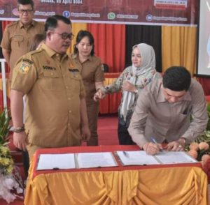 Di kesempatan yang sama, Wali Kota Gunungsitoli Sowa’a Laoli, S. E. M. Si bersama Unsur Forkopimda menandatangani komitmen bersama percepatan penurunan Stunting Kota Gunungsitoli Tahun 2024, sekaligus memberikan penghargaan (sertifikat) ke beberapa orang/ instansi dalam Penanganan Stunting, antara lain: