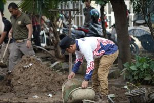 Usai pelaksanaan apel, Wali Kota bersama seluruh peserta bergoro membersihkan tumpukan lumpur dan sampah, serta mengangkat material yang menutup akses jalan dan drainase.